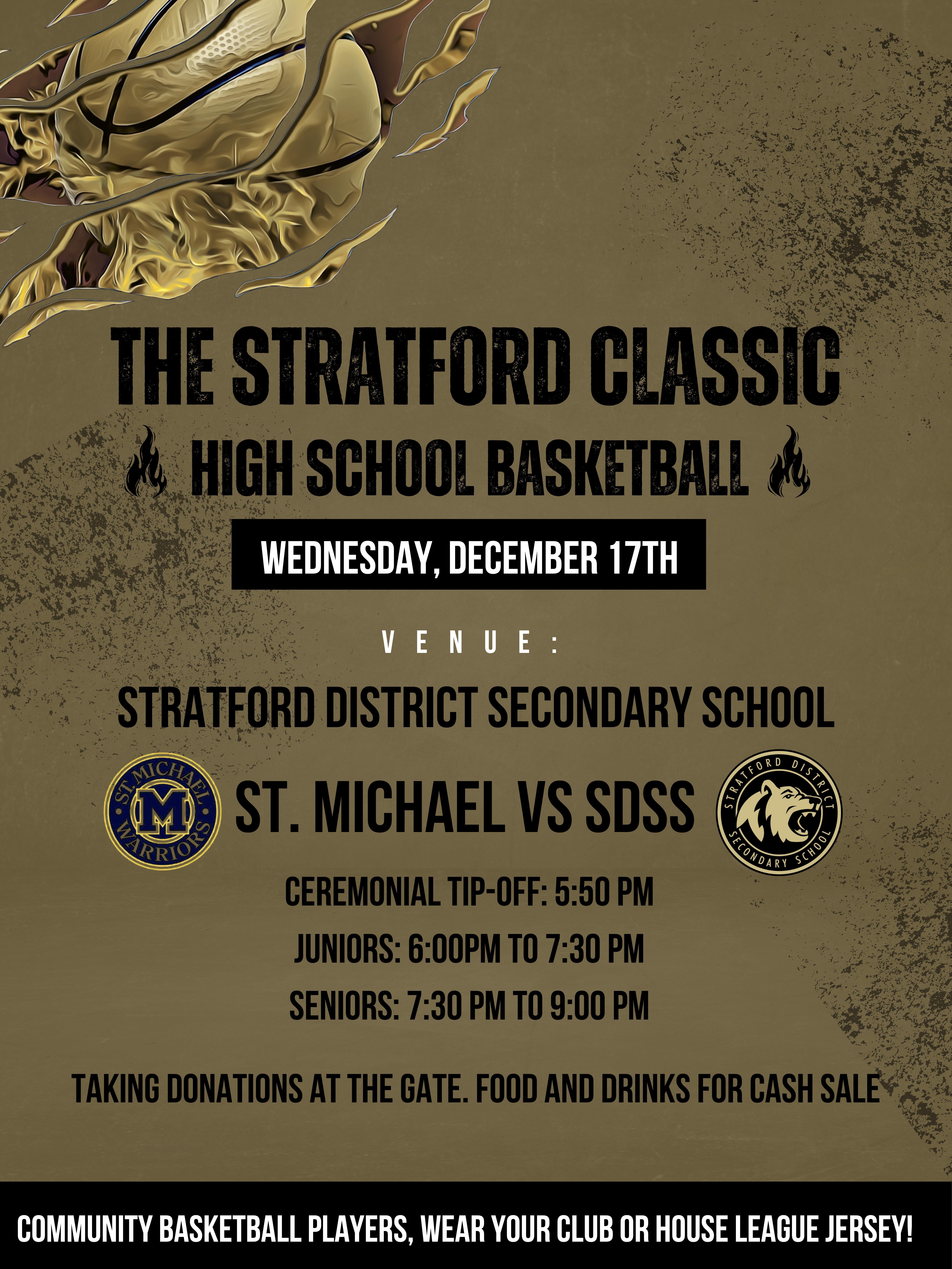 The Stratford Mayor is doing a ceremonial tip off, Canada Basketball sponsored prizes, spirit team will be bringing the energy and live SDSS Dance/Cheer team at half time!!! Any donations collected will support the basketball program. Arrive at 5:30 pm to grab your food, your seat and enjoy the show!